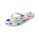 Diese niedlichen Flip Flops sind mit Kreise von bunten Polka Dot Blasen dekoriert: gelb, grün, türkis, blau, rot, orange und rosa.