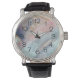 Uhr, Vintage Männeruhr mit schwarzem Lederarmband