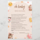 Diese bezaubernde Baby-Duschspielkarte besticht durch ein charmantes Landtier mit niedlichen Illustrationen einer Kuh, eines Hasen, Küken, Pferd und Schweins, umgeben von fröhlichen Blume und einer lächelnden Sonne. Die sanften Pastellfarben und das skurrile Design schaffen eine warme und einladende Atmosphäre. Besuchen Sie unseren Shop, um unsere gesamte Brown Niedlich Farm Animal Kollektion zu sehen.