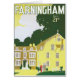 Vintage Reiseplakat für Transportausflüge nach Farningham in Sevenoaks, Kent, England in einer Art Deko Style Illustration mit vereinfachenden Linien und Farbblockierung.