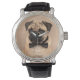 Fawn Mops Hund mit Bow Krawatte. Retro Stylish Clo Armbanduhr