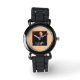 Uhr, Vintage Männeruhr mit schwarzem Lederarmband