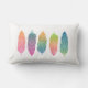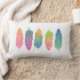 Das Kissen, das im Weiß mit bunte Federn gezeigt wird, drucken.