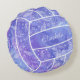 Dieses hübsche Volleyballtheater mit rundem Kopfkissen zeigt das Bild eines stilisierten lila Volleyballs mit farbenfrohen Akzenten in lila, rosa und blauen Farbtönen - ein zartes Doodle-Muster aus Paislies, Blume und Federn in weißen Decken bis auf eines der Volleyballfelder - personalisieren Sie mit ihrem Namen vorne und hinten - von katz_d_zynes