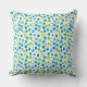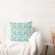 Kissen mit hellen, fröhlichen Federpunkt-Mustern in Blau und Grün.