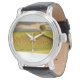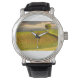 Uhr, Vintage Männeruhr mit schwarzem Lederarmband