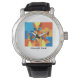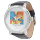 Uhr, Vintage Männeruhr mit schwarzem Lederarmband