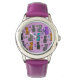 Uhr, Kinderuhr aus Edelstahluhr mit lila Lederarmband