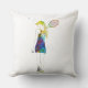 Decorative pillow featuring a vivid watercolor silhouette of a tennis player. Adds a splash of energy and modern athletic flair to any space.