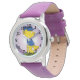 Uhr, Kinderuhr aus Edelstahluhr mit lila Lederarmband