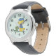 Uhr, Vintage Männeruhr mit schwarzem Lederarmband