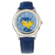 Kinderuhr aus Edelstahl mit blauem Lederarmband