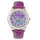 Uhr, Kinderuhr aus Edelstahluhr mit lila Lederarmband