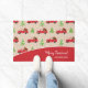 Fügen Sie eine festliche Vintage Touch zu Ihrem Urlaub Zuhause Haustür-Dekor mit dieser benutzerdefinierten Tür. Mat hat ein Muster eines Lastwagens mit Geschenken, Weihnachtsbäume mit Schnee und Schnee, und der Text Frohe Weihnachten mit Ihrem Familiennamen und Jahr auf rot. Der Text kann aufgrund Ihrer Einstellungen personalisiert sein. Doormat macht eine große Touch zu Ihrer Familie Zuhause Winter saisonale Dekoration!
