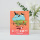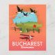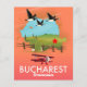 Bukarest Rumänien Ferienkarte mit fliegenden Gänsen und einem roten Zweiflugzeug.