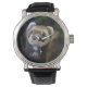 Uhr, Vintage Männeruhr mit schwarzem Lederarmband
