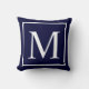 Fertigen Sie Monogrammtext auf Marineblau Kissen