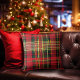 Festival Tartan "Joy" Calligraphy Decorative Kissen