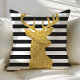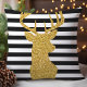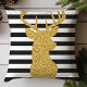 Das elegante Kissen mit goldener Silhouette aus Glitzer-Hirsch und klassischen Schwarz-Weiß-Streifen verleiht Ihrem Urlaubsstil eine Touch festlichen Glanzes. Ideal, um Ihren Urlaub fröhlich und anspruchsvoll zu Ihrem Wohnzimmer, Schlafzimmer oder gemütlichen Ecken zu bringen. Dieses schicke Kissen verbindet den Zauber von Weihnachten mit einem modernen Design und macht es zu einem auffälligen Akzent für jeden Raum während der Festsaison.
