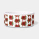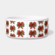 Personalisierte Schüssel mit festlichem Weihnachtsbogen in Rot und Gold. Umgeben von Poinsettia Blume, Kiefern und Weihnachtsdekorationen.
