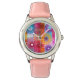 Kinderuhr aus Edelstahl mit rosa Lederarmband