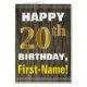 Dieses schlichte Geburtstagskarten-Design mit einem warmen Geburtstagswunsch wie "HAPPY 20 th BIRTHDAY, First-Name!" auf der Vorderseite, in fett gedrucktem Text auf einem Imitat Holzmuster Muster Hintergrund. Die Geburtstagsnummer hat ein goldfarbenes Imitat/Imitation-Aussehen. Der Name auf der Vorderseite kann angepasst werden. Im Inneren befindet sich eine Geburtstagsnachricht, die individuell angepasst werden kann. Eine solche Grußkarte könnte eine lustige Art sein, jemandem, der seinen zwanzigsten Geburtstag feiert, Geburtstagswünsche zu geben. [~Z0000280]