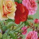 Dieses Produkt zeichnet sich durch ein elegantes Farbmuster aus: fette Rose in strahlenden Farbtönen - rot, gelb, rosa und durch grünes Blattwerk ergänzt.