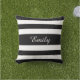 Feines Schwarz-Weiß Streifen Muster Ihren Namen Outdoor Kissen. Ein stilvolles und einzigartiges, minimalistisch gewölbtes, schwarz-weiß gestreiftes Kissen mit personalisiertem weißen Namen in der Mitte.