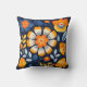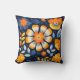 Fettflorale Illustration in Orange und Blau Kissen