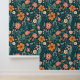 Hübsche Wildblumen schälen und kleben Tapeten für eine akzentuierte Wand oder Wand. Grüner Hintergrund.