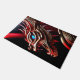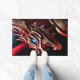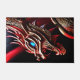 Ein bedrohlicher Feueratmendrache mit lebhafter Rot- und Goldskala, mit blauen Augen, die seine schrecklich großen Goldzähne zeigen, realistischer Schattierung und Texturen, hoher Detailliertheit, nah-up Winkel, dunkler Hintergrund mit Highlights, digitales Bild 4k Auflösung, Kinobeleuchtung, Furcht erregende Atmosphäre.Auf diesem Foto der künstlichen Intelligenz.