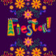 Die farbenfrohen Blumen werden auf einem lila Hintergrund Liebe. Passend zu Produkten und Einladungen.