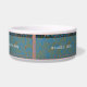 Das originelle Grafikdesign von ZoeSPEAK auf dieser Dog Bowl entstand aus einem 35mm-Streifen. Die Hintergrundfarben sind matt Himmel Blues und rost. Die Filmstreifen-Farben sind in Aqua-Blues und goldbraun gehalten. Die Spitze des Filmstreifens, wo er sich umfaltet, ist schwarz mit aqua-blauen Highlights. Die weiße Textzeile, die "Studiohund" lautet, ist Set, um zu personalisieren, zu verwenden, wie es ist, oder zu löschen.
