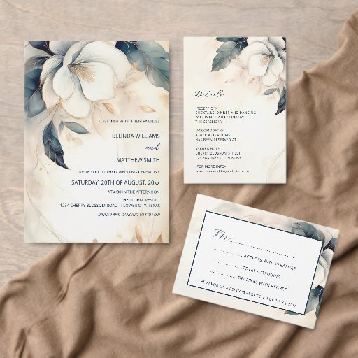 Fine Art Blue Ivory Floral Wedding Begleitkarte