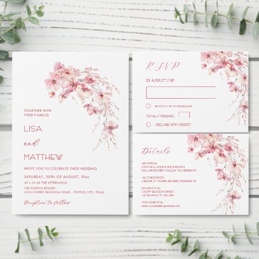 Pink boho floral wedding response card. Matching invitation available.