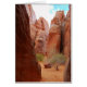 Eine enge Passage zwischen den Sandsteinflossen des Arches Nationalparks führt zu diesem geheimen Innenhof. Auf der Rückseite der Karte befindet sich der Delicate Arch in Arches Nationalpark. Sie können eine winzige Person in rot sehen, direkt unter dem Bogen. Eine Karte mit Delicate Arch ist unten: