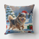 Finnischer Lapphund Running Snow mit Weihnachtshut Kissen