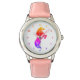 Kinderuhr aus Edelstahl mit rosa Lederarmband