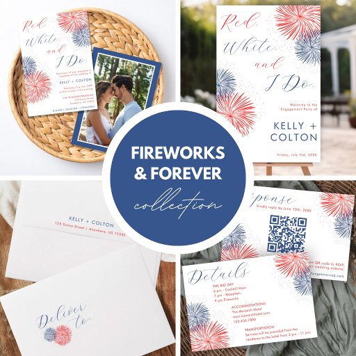 Add a festive finishing touch to your wedding mail with this Fireworks & Forever round sticker, featuring a vibrant red, white, and blue fireworks design. Perfect for patriotic weddings, military celebrations, or 4th of July events, these stickers are ideal for sealing envelopes, decorating favors, or adding a coordinated accent to your wedding stationery.