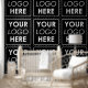 Moderne, personalisierte Bürotapete in schwarz-minimalistischem Design mit Firmenlogo. Personalisieren Sie Ihre eigenen Designs.