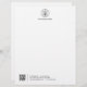 Ein einfaches, benutzerdefiniertes Briefkopf-Template in modernem minimalistischem Stil mit einem einfachen schwarzen Rahmen, der leicht mit Ihrem Firmenlogo und Briefkopf-Fußzeile einschließlich Firmenname, Adresse, Telefon, E-Mail, Website und QR-Code aktualisiert werden kann