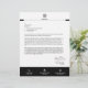 Ein einfaches, individuelles, minimalistisches Briefpapier mit einer einfachen schwarzen Linie, die leicht mit Ihrem Firmenlogo und der Kopfzeile Ihres Firmennamens, Ihrer Anschrift, Telefon, E-Mail, Website und QR Code aktualisiert werden kann