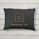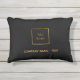 Ein eleganter schwarzer Hintergrund. Vorlagen für Ihr Unternehmen, Firmenlogo und Text. Goldene Buchstaben. Wenn Sie das Kissen ohne Text gewollt haben, löschen Sie mit Ihrem Backspace-Schlüssel.