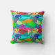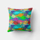 Dieses Kissen hat ein Design einer Fischschule in Grün, Blau, Orange, Gelb, Rot, Rosa und Blau-Grün Schwimmen im Ozean. Ideal für Kinder!