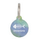 Das Design dieses Pet ID-Tags zeichnet sich durch einen herrlichen Wasserfarbenverlauf von Blues und Grüntönen aus, mit einem prominenten Fischknochensymbol in der Mitte, ergänzt durch Ihren Haustiernamen in passendem Schriftart. Das coole Farbschema und die spielerische Symbolik machen dieses Etikett zu einer liebenswerten Wahl für ein Haustier, vor allem für eine Katze, angesichts der klassischen Verbindung zwischen Katzen und ihrer Vorliebe für Fische. Die weiche Farbmischung wirkt beruhigend und gleichzeitig elegant und funktionell als eine Form der Tieridentifizierung.