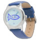 Kinderuhr aus Edelstahl mit blauem Lederarmband