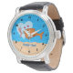 Uhr, Vintage Männeruhr mit schwarzem Lederarmband