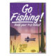 Fischen! Vintage oder Retro-Stil Reiseplakate eines Fischers auf einem See während des Abends Sonnenuntergang.