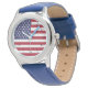 Kinderuhr aus Edelstahl mit blauem Lederarmband