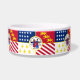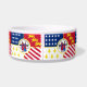 Haustier-Bowl mit der Flagge der Stadt Detroit, Michigan; rote, weiße und blaue Flagge mit US Flagge, Flöten, Drachen und Siegel der Stadt
